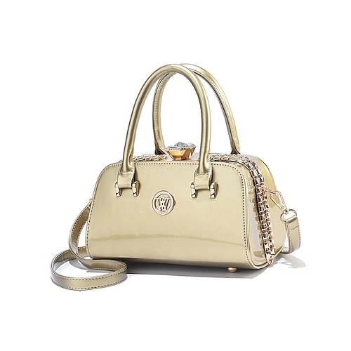 elegante borsa da sera da donna in pelle verniciata, decorata con cristalli, disponibile in rosso e blu navy, perfetta per feste formali e celebrazioni festive