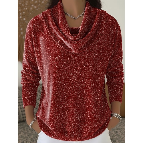 Capodanno Per donna Velluto Brillante Vintage Tropicale Elegante Manica Lunga Scollo a Cascata Top Regolari Abbigliamento da sera Festa serale Abiti da festa Rosso Blu Reale Viola Oro Autunno Inverno
