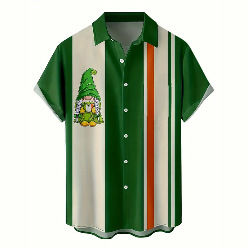 St.Patrick's Day Four Leaf Clover Stripe Casual Men's Shirt Daily Wear Going out Weekend Summer Turndown Short Sleeves Dark Green, Orange, Green S, M, L 4-Way Stretch Fabric Shirt St.
