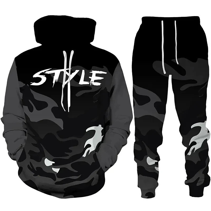 Men's splatter 2pcs 3D Sweatshirt Sets Tracksuit Hoodie Sweatshirt Long Sleeve Long pants Hooded Casual Daily Athleisure 3D Print Spring Fall Winter Robin's Egg Blue