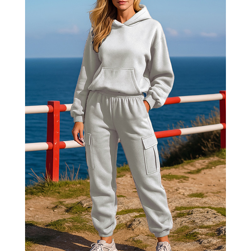 Women's Tracksuit Sweatpants Hooded Jacket Baggy Zipper Pocket Solid Colored Clothing Suit Fall Black Dark Gray Gym Workout Sports Windproof Long Sleeve Sport Activewear Micro-elastic Regular Fit