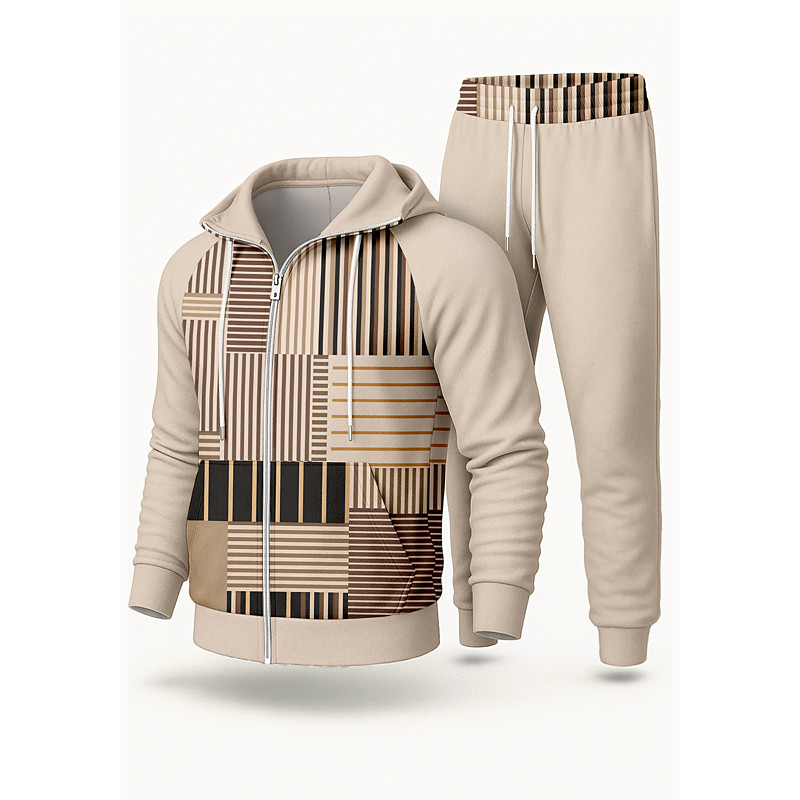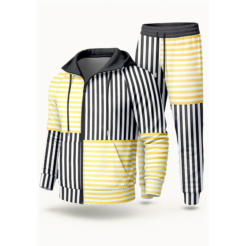 Men's Hoodie Tracksuit 2 Piece Tracksuit Drawstring Zip Up Striped Clothing Suit Fall Yellow Vocation Outdoor Travel Lightweight Fashion Long Sleeve Sport Activewear Stretchy Regular Fit