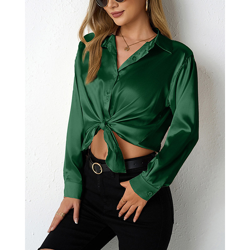 Women's Shirt Elegant Dressy Satin Plain Stylish Casual Long Sleeve Shirt Collar Regular Tops Daily Going out Buttons Light Green Camel Green Dark Gray Summer Fall