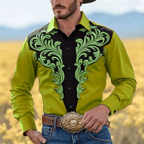 Per uomo Stampa Floreale Fiori Camicia Camicia Western Camicia da cowboy Manica Lunga Vintage Retrò All'aperto Vacanza Primavera Autunno Collo ripiegato Stampa 3D Camicia tipo lino Rosso Arancione