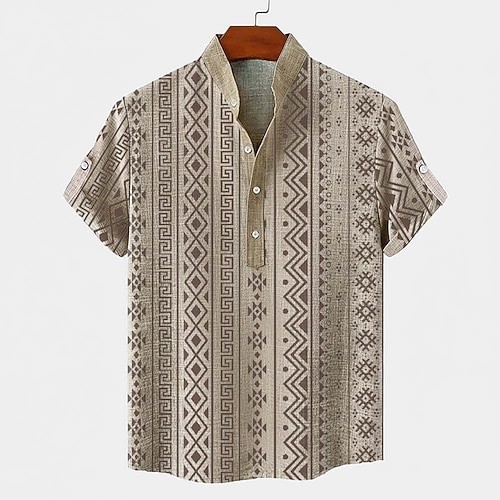 Per uomo Geometrico Chiave greca Meandro Camicia Camicia button-down Manica Corta Vintage Retrò Ferie Casual Quotidiano Estate Primavera Colletto Mao Colletto Henley Stampa 3D Camicia tipo lino Cáqui