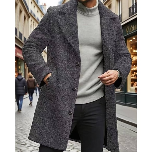Per uomo Cappotto Trench Trench lungo Vacanza Quotidiano Autunno Inverno Poliestere Antivento Caldo Capispalla Abbigliamento Moda Classico Semplice Tasca Bavero Monopetto Un Bottone