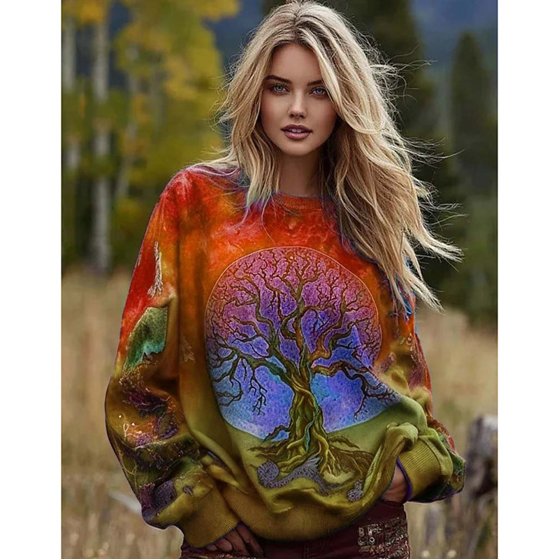Women's Pullover Graphic Tie Dye Abstract Elegant Warm Vintage Long Sleeve Crew Neck Regular Tops Home Street Dailywear Print Blue Red Orange Green Spring Fall Winter