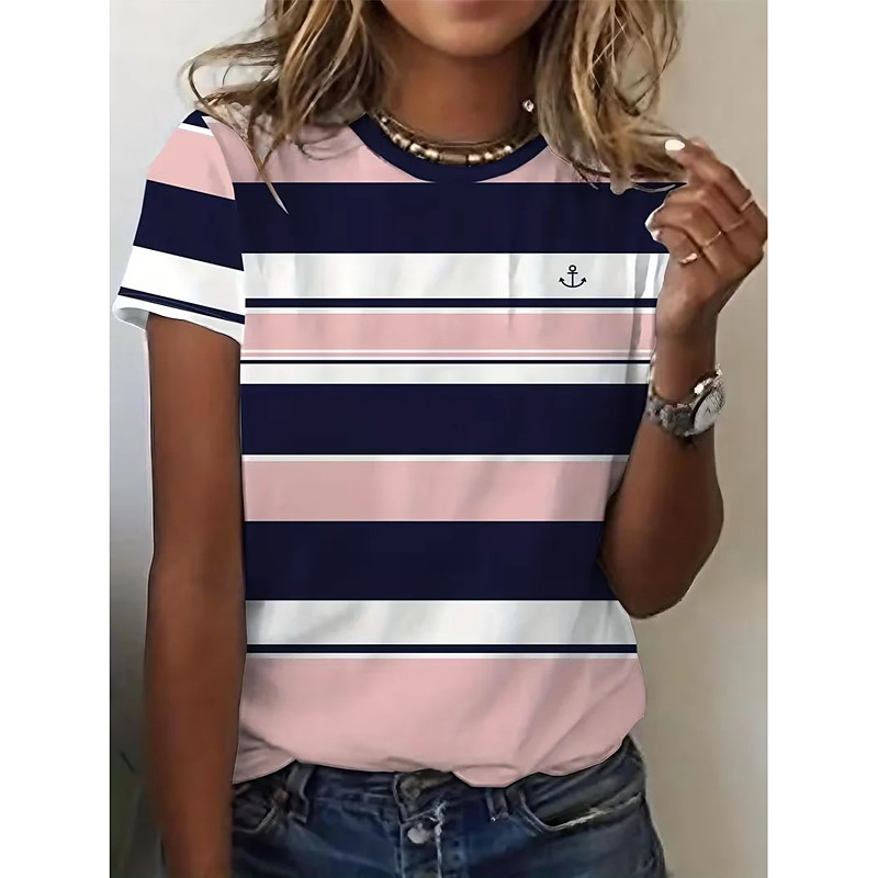 Women's T Shirt Floral Graphic Geometric Stylish Classic Casual Short Sleeve Crew Neck Round Neck Regular Tops Daily Print Pink Summer Spring Fall Winter