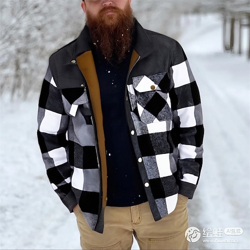 Per uomo Giacca Invernale Giacca Camicia Giacca in Pile Giacca Casual Vacanza Quotidiano Calore Termico Tasca Pile Autunno Inverno Plaid Moda Streetwear Collo alla coreana Regolare Nero Rosso Verde