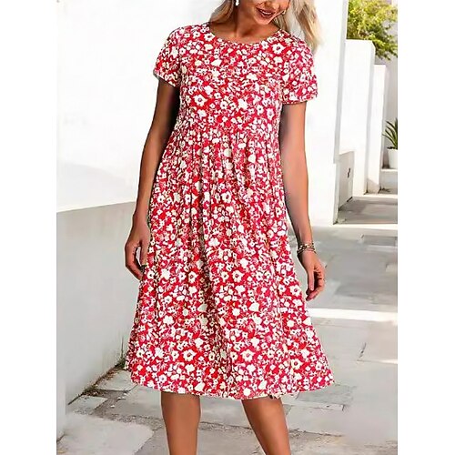 Per donna Abito Midi Abito Floreale Abito Stampato Moda Moderno All'aperto Vacanza Weekend Vestibilità comoda Floreale Manica Corta Girocollo Blu Rosso Viola Verde Estate Primavera