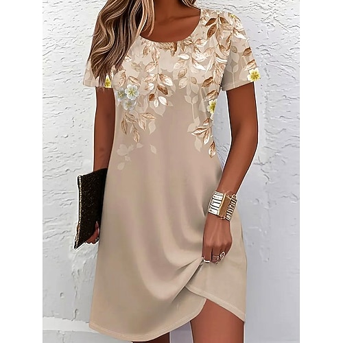 Per donna Abito Midi Abito a Tubino Vestito T-Shirt Casual Quotidiano Vestibilità regolare Floreale Grafico Manica Corta Girocollo Champagne Estate Primavera