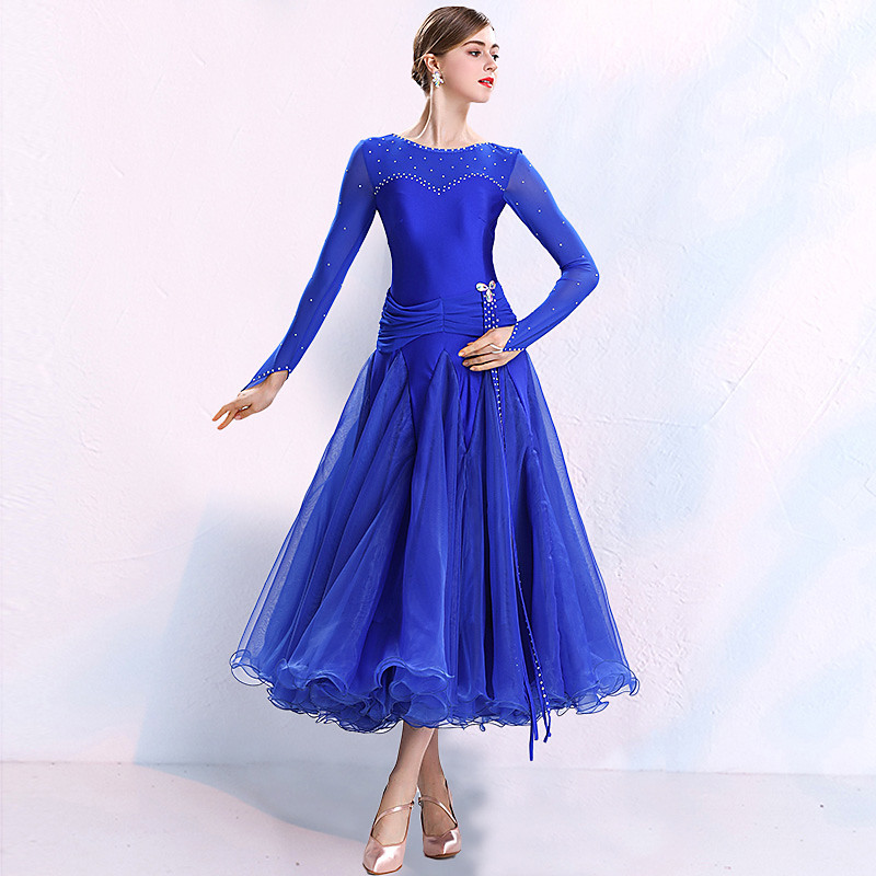 Ballroom Dance Dress Split Joint Crystals Competition Dress/ Rhinestones Women's Performance Long Sleeve Spandex