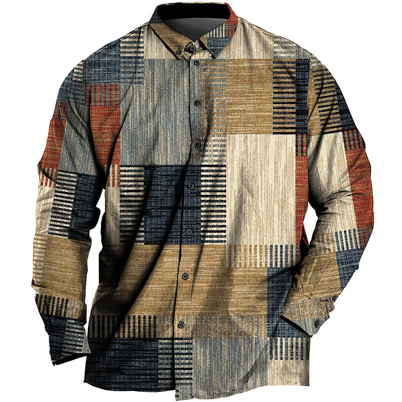 Men's Plus Size Shirt Big and Tall Color Block Turndown Buttons Long Sleeve Spring Summer Sports Fashion Streetwear Designer Outdoor Vacation Tops