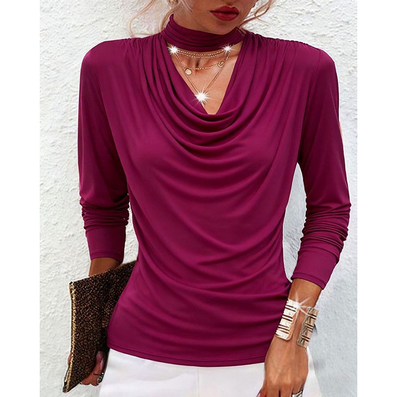 Women's Blouse Plain Elegant Fashion Casual Long Sleeve V Neck Regular Tops Daily Going out Weekend Patchwork Black Red Brown Green Spring
