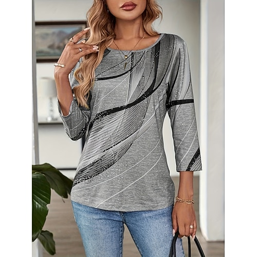 Per donna Maglietta Geometrico Astratto Casual Boho Manica Lunga Girocollo Top Regolari Uscire Weekend Abbigliamento da vacanza Blu Oro Grigio Primavera, Autunno, Inverno, Estate