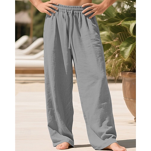 Per uomo Pantaloni di Lino Pantaloni Pantaloni Estivi Pantaloni da Spiaggia Tasca Coulisse Elastico in vita Semplice Comodità Traspirante Vacanza Quotidiano Ferie Hawaiano Boho Cachi chiaro Nero