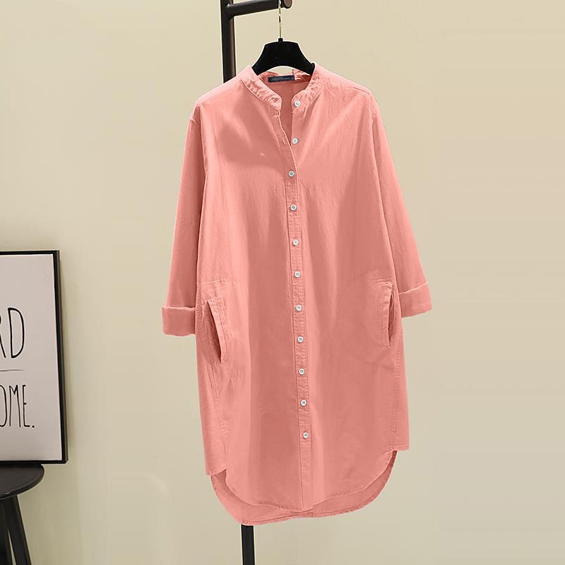 Women's Shirt Blouse 100% Cotton Plain Modern Casual Long Sleeve V Neck Long Tops Holiday Going out Pocket Buttons White Yellow Pink Green Summer
