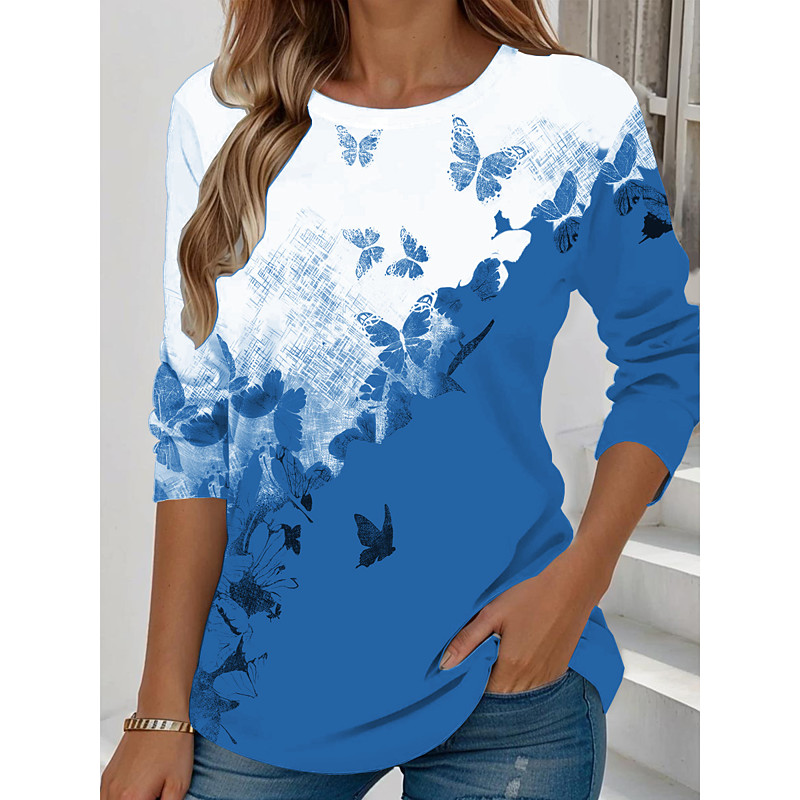 Women's T shirt Long Sleeve Crew Neck Long Sleeve Tunic Floral Elegant Cute Regular Tops Daily Going out Weekend Print Black Red Blue Purple Green Spring Fall Prefall