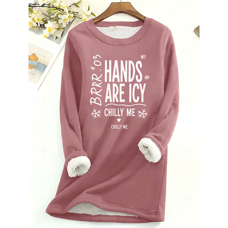Women's Fleece Lined Pullover Sweatshirt Pajamas Pullover Sweatshirt Pullover Sweatshirts Letter Warm Streetwear Casual Long Sleeve Crew Neck Long Tops Home Dailywear Casual Print Black Yellow Pink