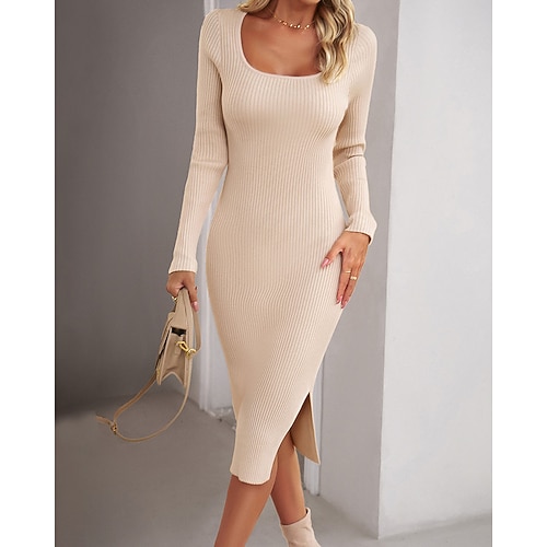 Per donna Abito Midi Abito in maglia Attillato Tubino Moda Moderno Quotidiano Ferie Weekend Vestibilità regolare Semplice Manica Lunga Collo quadrato Blu Nero Verde Albicocca Primavera Autunno