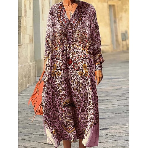 Per donna Abito Midi Vestito Estivo Abito a trapezio Vacanza Casual Boho Uscire Spiaggia Vestibilità comoda Grafico Geometrico Manica Lunga Scollo a V Rosa Blu Verde Albicocca Primavera Autunno