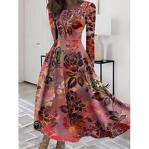 Per donna Abito Midi Abito a trapezio Abito aderente e svasato Vacanza Casual Boho Feste Quotidiano Uscire Vestibilità regolare Floreale Grafico Manica Lunga Girocollo Blu Rosso Viola Verde Estate