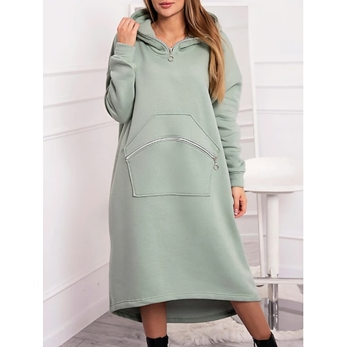 Per donna Abito Midi Abito con Cappuccio Vestito Casual Moda Moderno Quotidiano Ufficio Vacanza Vestibilità regolare Semplice Manica Lunga Con Cappuccio Rosa Rosso Verde Grigio Primavera Autunno