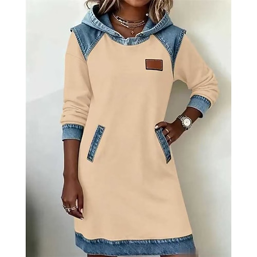 Per donna Mini Abito Abito con Cappuccio Vestito Casual Moda Moderno Quotidiano All'aperto Vacanza Vestibilità regolare Semplice Manica Lunga Con Cappuccio Nero Bianco Giallo Verde Autunno Inverno
