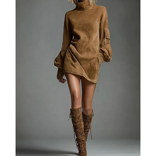Per donna Mini Abito Tubino Vestito a fascia Vacanza Casual Vacanza Feste Streetwear Vestibilità regolare Semplice Dolcevita Nero Marrone Verde militare Autunno