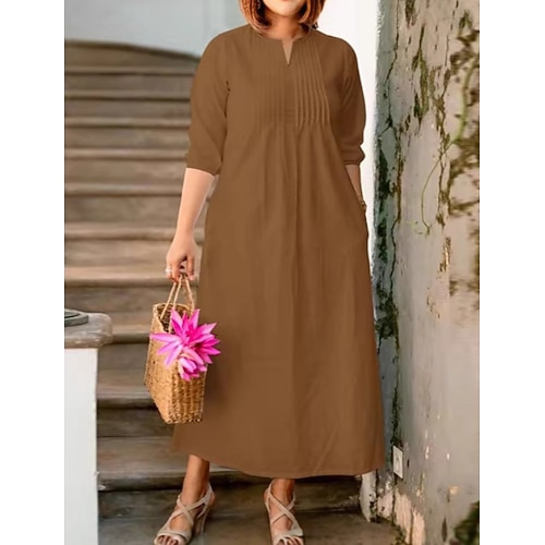 Per donna Abito Midi Vestito Estivo Abito a trapezio Casual Spiaggia Feste Vestibilità comoda Semplice Mezza Manica Girocollo Nero Marrone chiaro Verde Estate Primavera