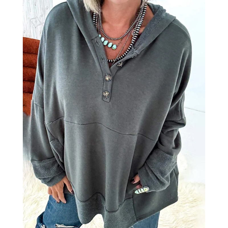 Women's Pullover Hoodie Sweatshirt Plain Streetwear Casual Long Sleeve Hooded Regular Tops Street Holiday Buttons Red Light Grey Dark Gray Fall Winter