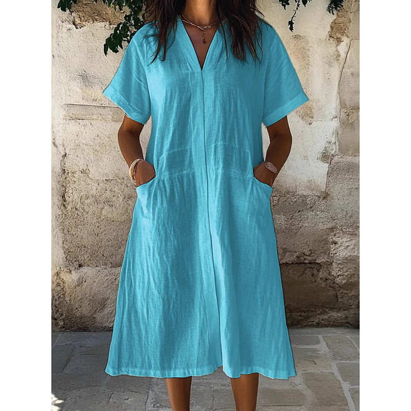 Women's Midi Dress Shift Dress Summer Dress Casual Daily Loose Fit Plain Short Sleeve V Neck Blue White Purple Green Summer Spring