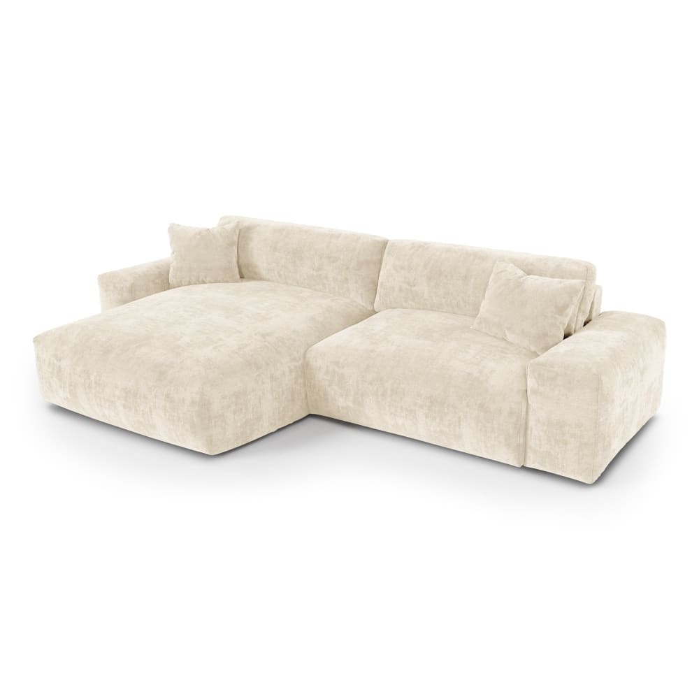 Divano angolare sinistro 4 posti velluto goffrato crema