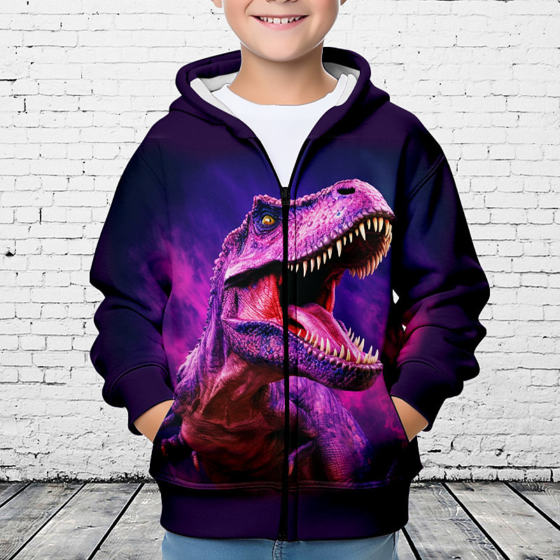 Boys 3D Dinosaur Hoodie Coat Outerwear Long Sleeve 3D Print Fall Winter Fashion Streetwear Cool Kids 3-12 Years Outdoor Casual Daily Regular Fit