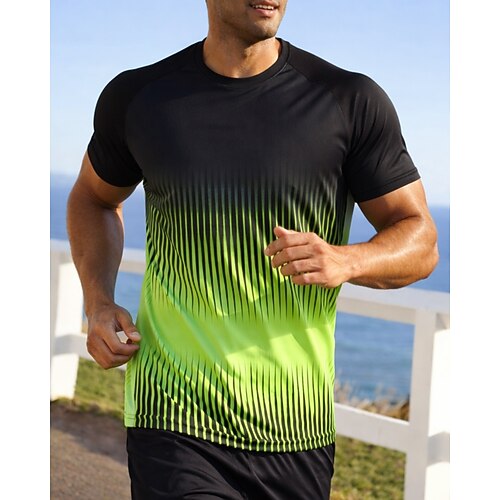 Per uomo Sfumatura A righe T-shirt da corsa Maglia a compressione Maglia atletica Sport in alto Estate Manica Corta Asciugatura Rapida Traspirante Allenamento in Palestra Camminata Jogging Blu Bianco