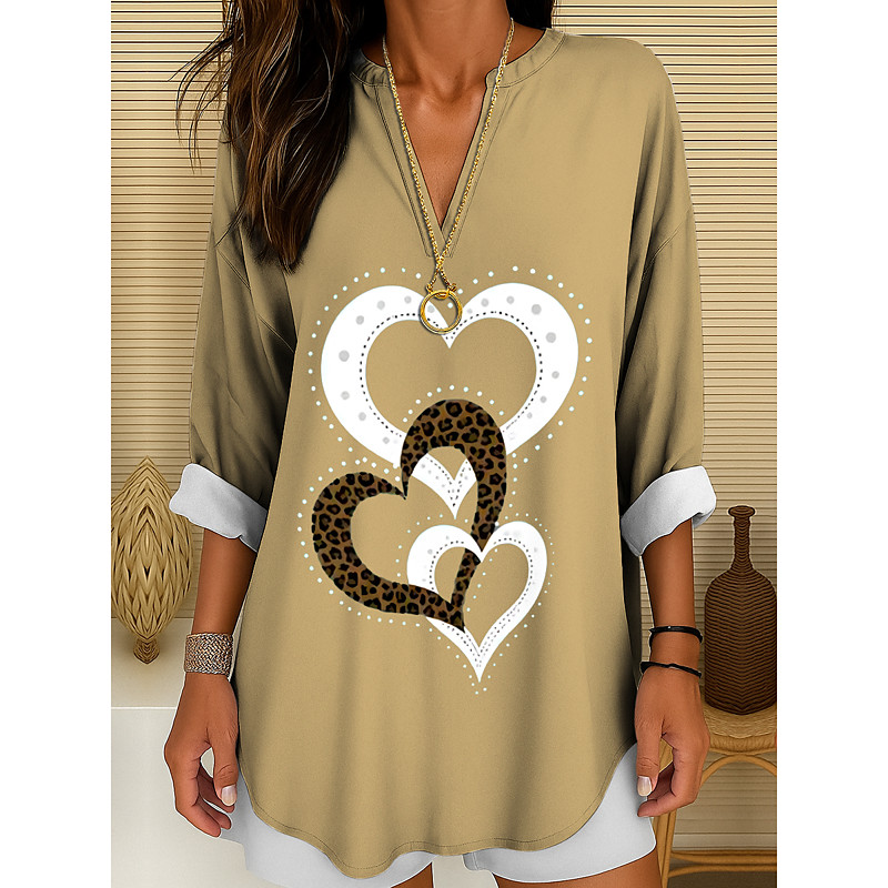 Women's Blouse Tunic V Neck Long Sleeve Boho Casual Tops Heart Graphic Geometric Elegant Stylish Regular Tops Daily Print Black White Yellow Red Blue