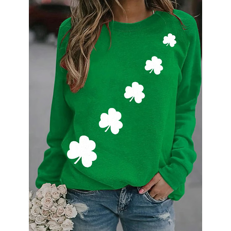 Women's St Patrick's Day Lucky Pullover Sweatshirt Graphic Shamrock Casual Long Sleeve Crew Neck Regular Tops Casual Street Light Green Green Army Green Summer Spring Winter