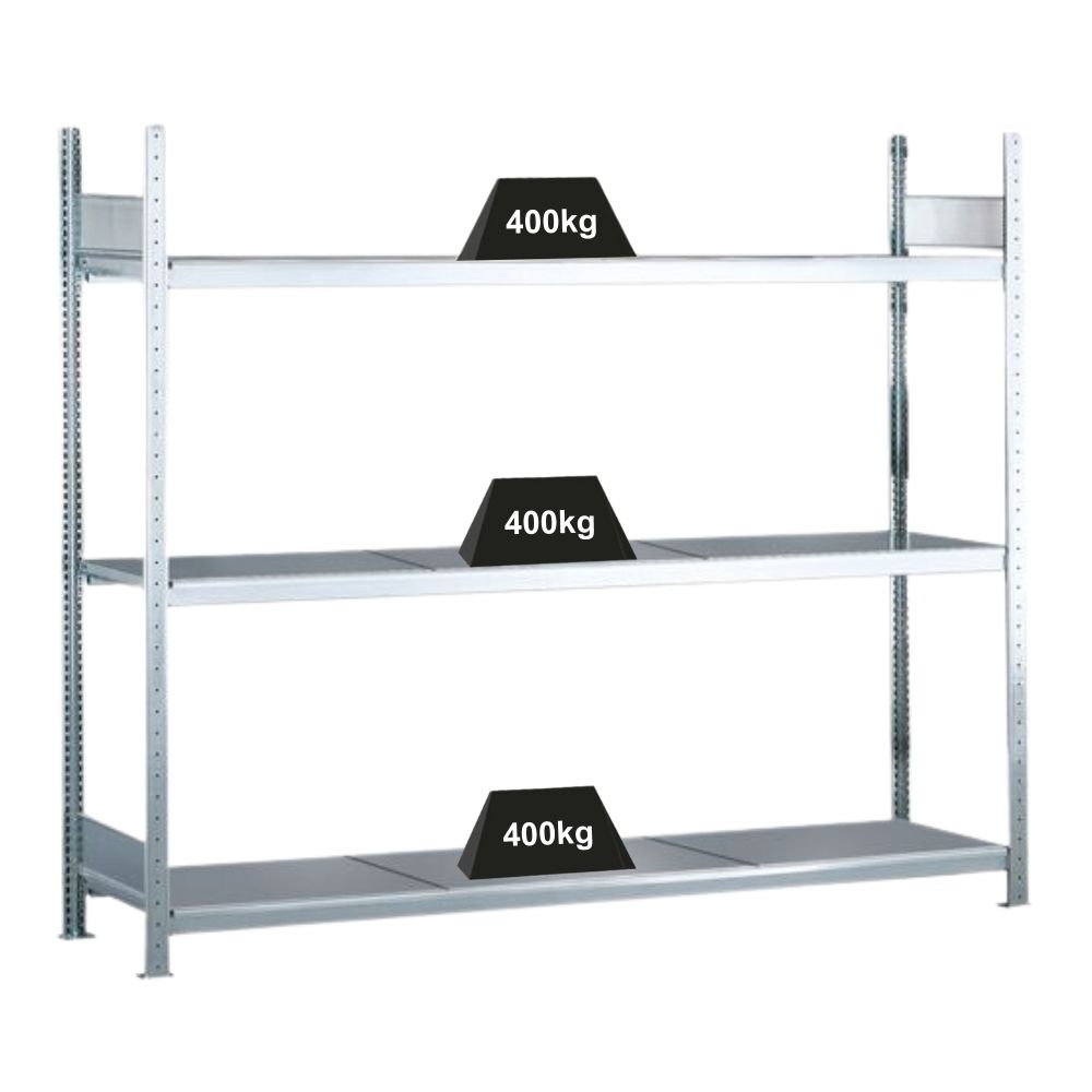 PROREGAL Weitspannregal mit Stahlböden WS 2000 | Grundregal | HxBxT 200x225x50cm | 3 Ebenen | Fachlast 400kg | Verzinkt