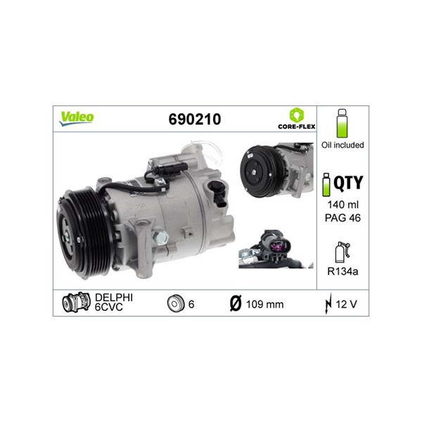 Kompressori, ilmastointilaite 12V Valeo 690210 - opel, vauxhall - OE 13346493, 13378497, 13414018