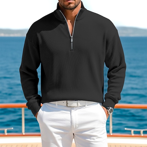 Per uomo Maglia Felpa a nido d'ape Maglione Felpa con zip corta Nero Bianco Vino Blu marino Verde Colletto Mao Semplice Sport Outdoor Quotidiano Ferie Streetwear Casual Atletico Primavera Autunno