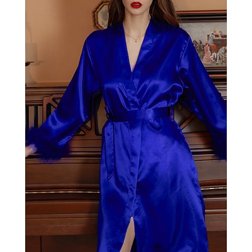 Per donna Accappatoio Casual Morbido Raso Colore Puro Piuma Quotidiano Casa Da letto Manica Lunga Scollo a V Nero Bianco Champagne Rosa Vino Estate Vestibilità regolare