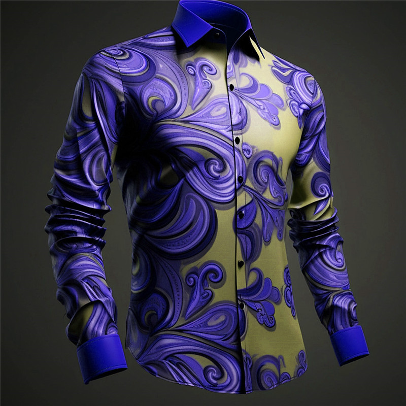 Men's Casual Shirt Long Sleeve Designer Retro Casual Vacation Going out Club Fall Spring Fall Classic Collar Print Blue Purple Green Gray