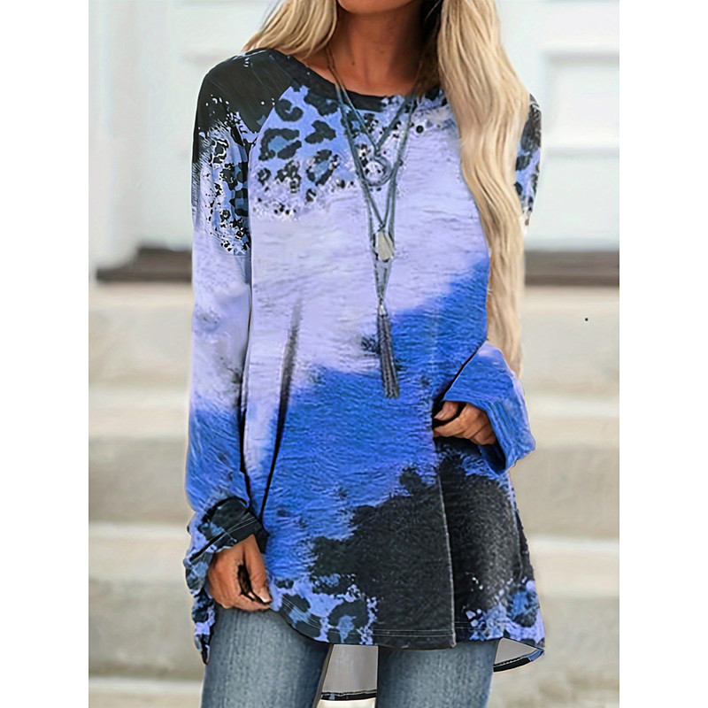 Women's Plus Size Tops T Shirt Leopard Geometry Print Long Sleeve Crew Neck Casual Daily Polyester Fall Winter Blue Purple