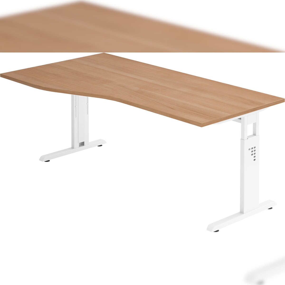 bümö höhenverstellbarer Schreibtisch O-Serie 180x100 cm in Nussbaum, Gestell in weiß - großer PC Tisch für's Büro manuell höhenverstellbar,