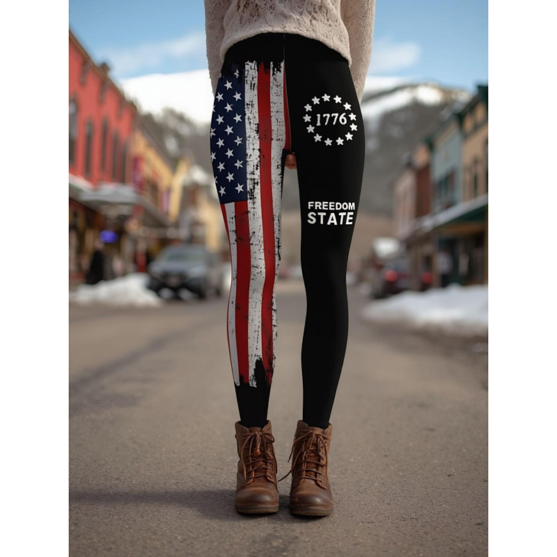 American 250th Women's Leggings Vacation Vintage Ethnic Style Full Length High Waist Graphic Flag Geometric Breathability Soft Comfortable Stretchy Daily Home Outdoor Black Spring Fall Winter Slim