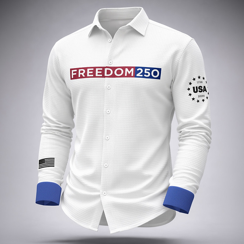 Men's Patriotic Freedom America's 250th Anniversary Shirt Waffle Shirt Casual Shirt Long Sleeve Fashion Casual Dailywear Holiday Summer Spring Turndown 3D Print Textured Button Up Shirts Blue White