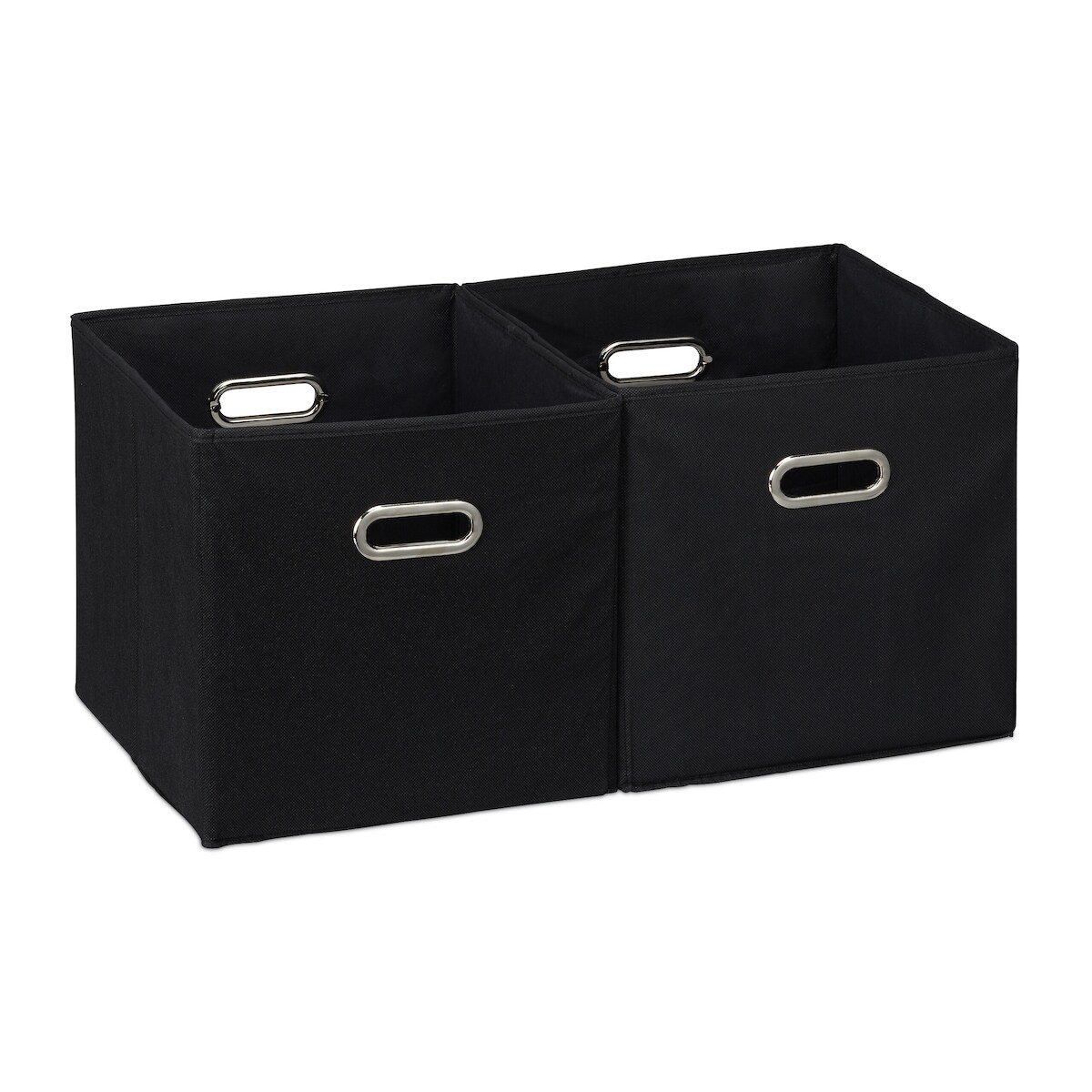 Relaxdays Aufbewahrungsbox, 2er Set, faltbare Regalboxen, Grifflöcher, HBT: 32 x 33 x 33 cm, Faltboxen Regale, schwarz