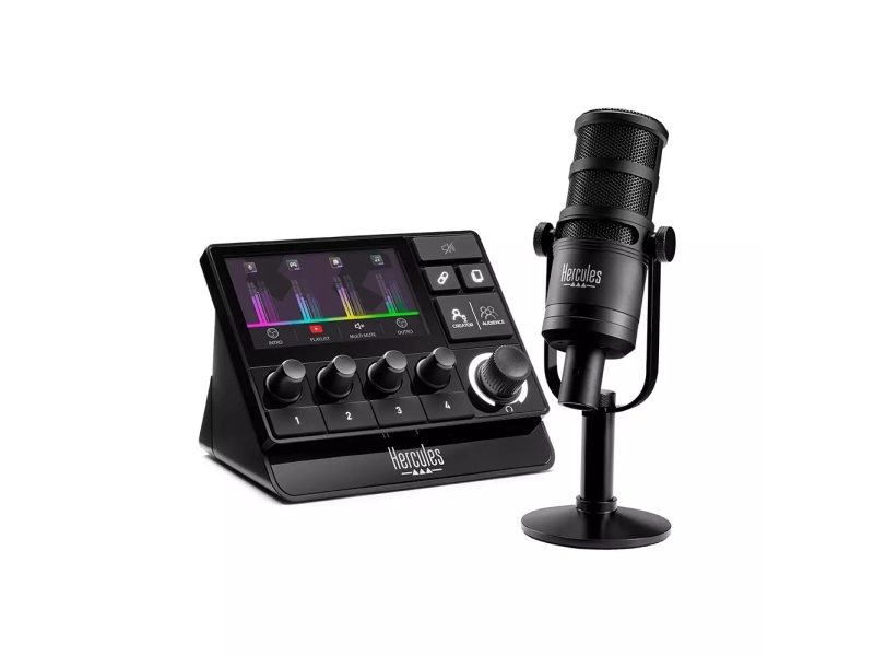 Hercules Stream Essentials Kit, Table microphone, Unidirectional/Cardioid, 50 - 18000 Hz, -56 dB, 350 O, 79 x 207 x 53 mm