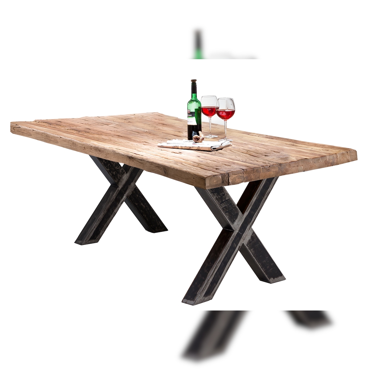 SIT Möbel Esstisch 180 x 100 cm | 50 mm Platte Teak-Holz | Natur | Gestell Metall in X-Form | B 180 x T 100 x H 75 cm | 15620-41 | Serie TABLES & CO