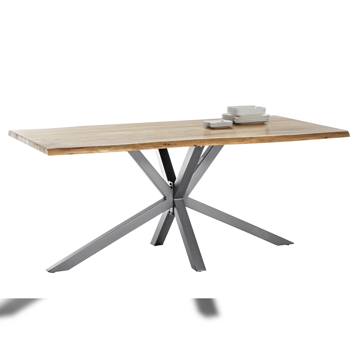 SIT Möbel Baumkante-Esstisch 200 cm aus Akazie | Platte 36 mm natur | Gestell Metall silbern | B 200 x T 100 x H 78 cm | 15203-40 | Serie TABLES & CO